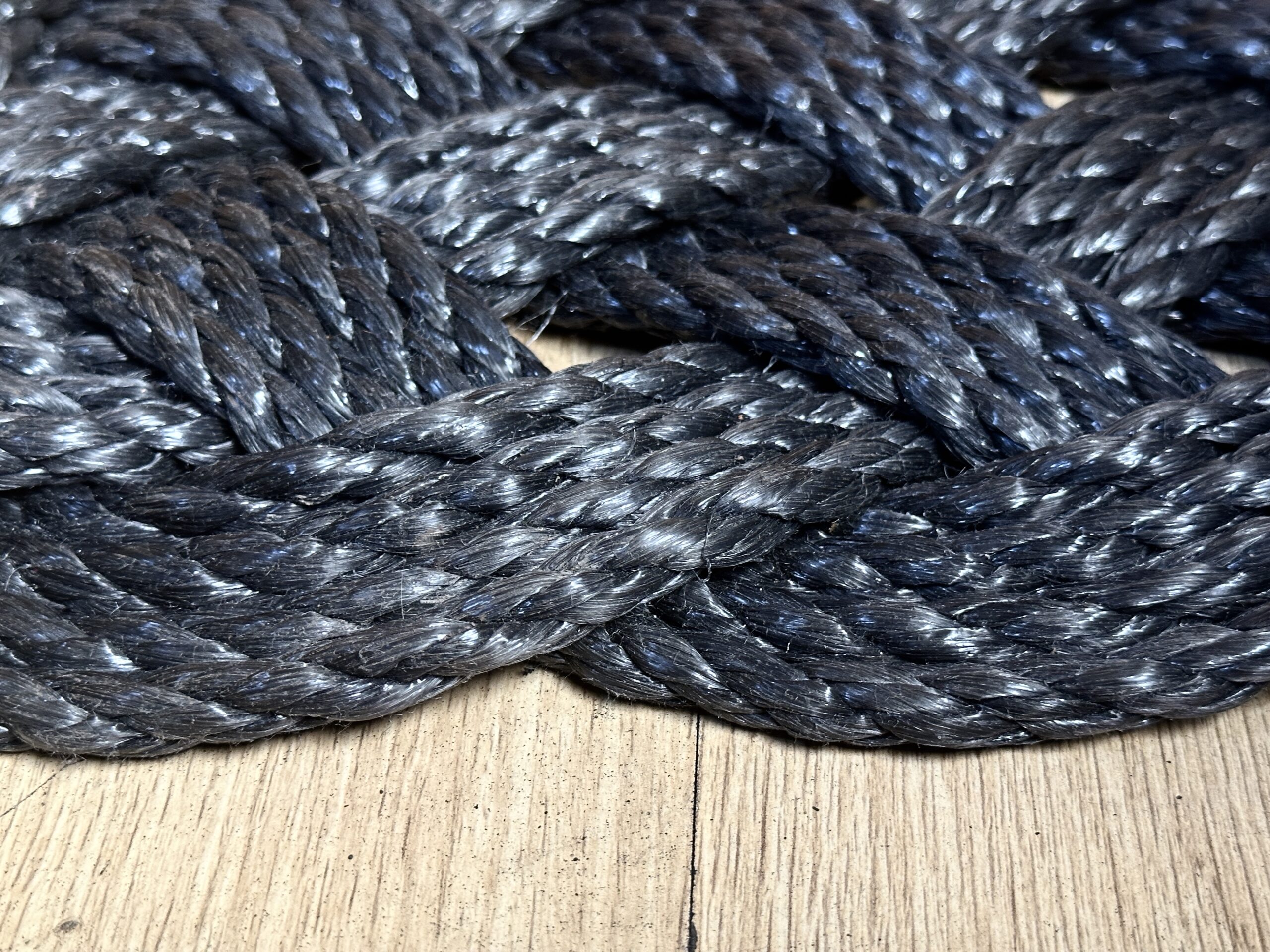 The mat is made from durable synthetic rope chosen for its resilience and ability to hold form over time. Nothing is glued. The ends are finished using traditional methods, creating a structurally sound, long-lasting piece.
